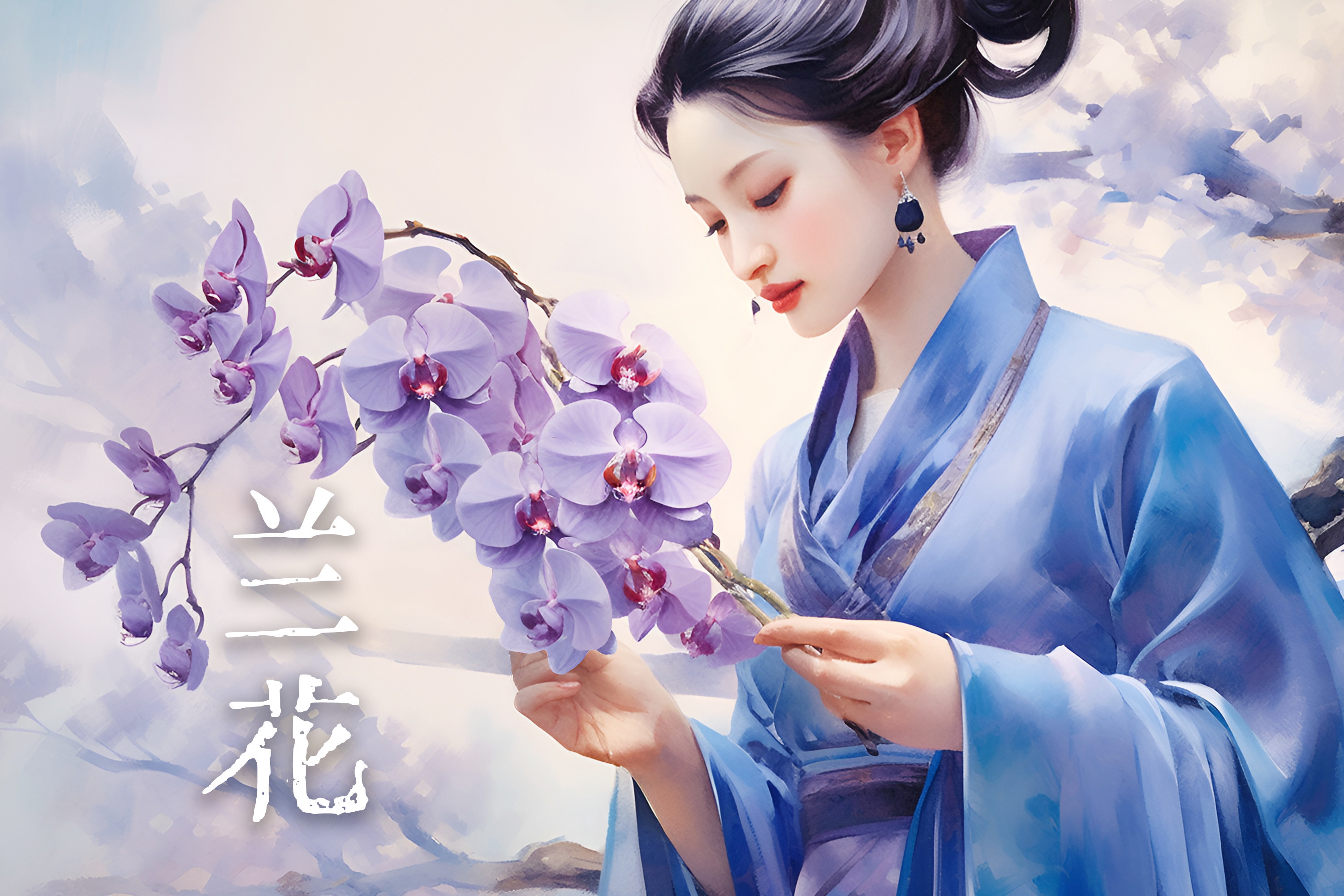 兰花是我国传统名花,更是“花中四君子”之一。它喜好湿润的环境,香气清冽,姿态优美,品种多样,既可以食用,也可以入药。兰花常生在幽谷,人们用“空谷幽兰”来形容谦谦君子和高雅女性。它的花语是淡泊、高洁、雅致、贤德。
